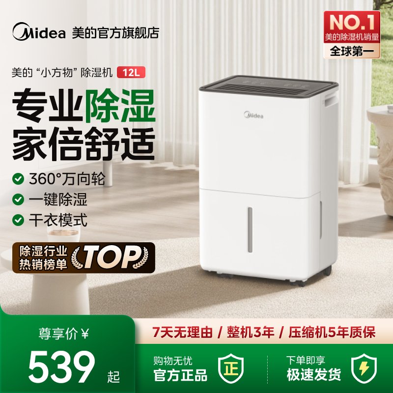 美的除湿机家用轻音抽湿机室内卧室除湿器12升梅雨季回南天速干爽