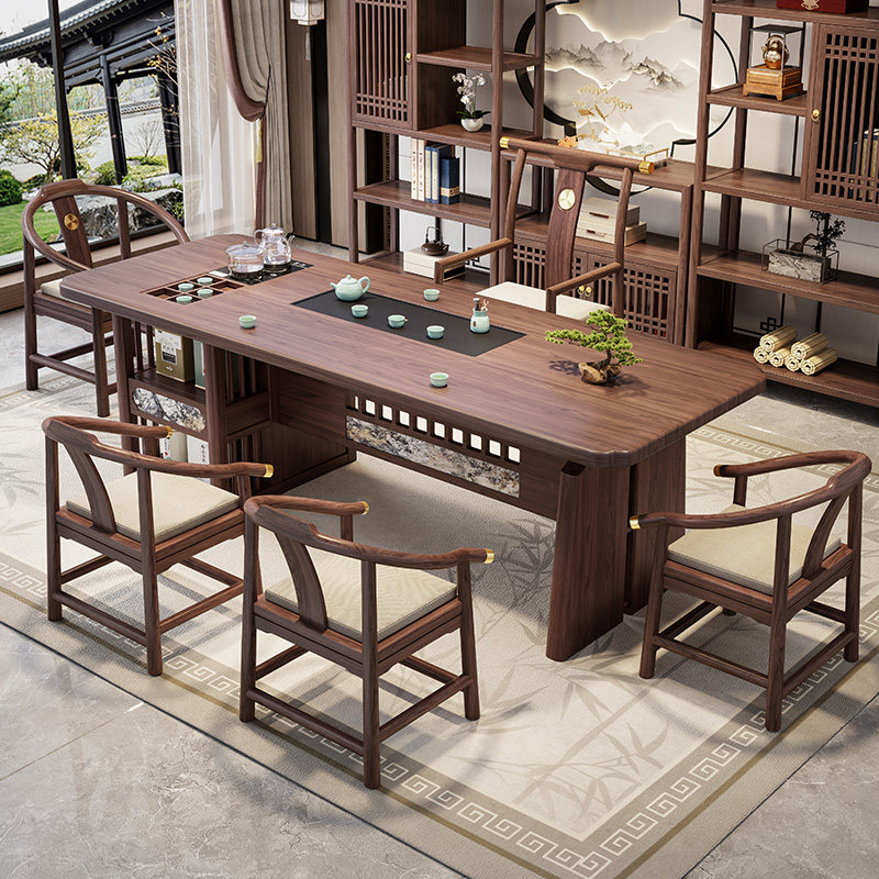 新中式简约实木茶桌椅组合办公家用禅意茶室大板干泡茶台一桌五椅