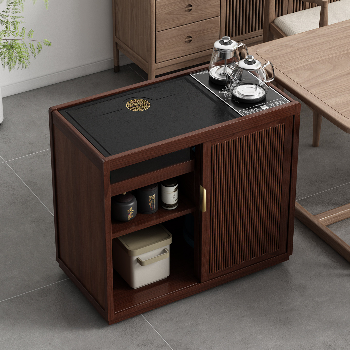 移动茶桌新中式家用茶几非实木小茶台办公室烧水壶一体茶车储物柜