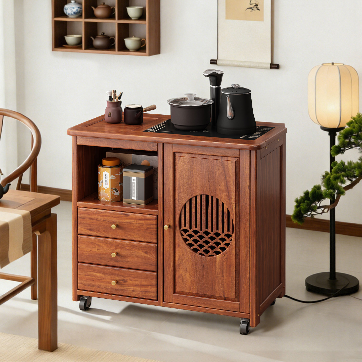 花梨实木移动茶水柜烧水壶一体茶具套装家用茶桌茶几茶台中式茶车