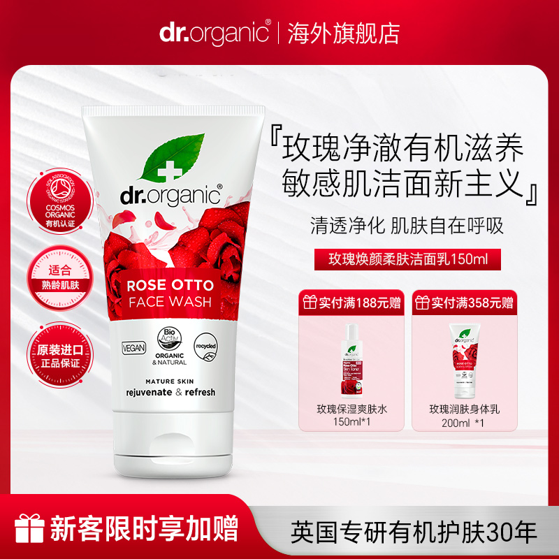 DrO有机博士玫瑰焕颜柔肤洁面乳150ml滋润补水保湿清洁洗面奶临期