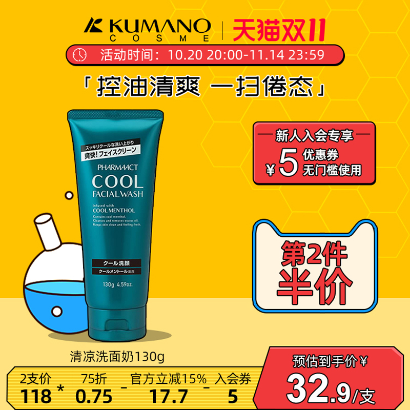日本熊野油脂男士控油保湿清洁洗面奶女男士清凉保湿滋润酷爽130g