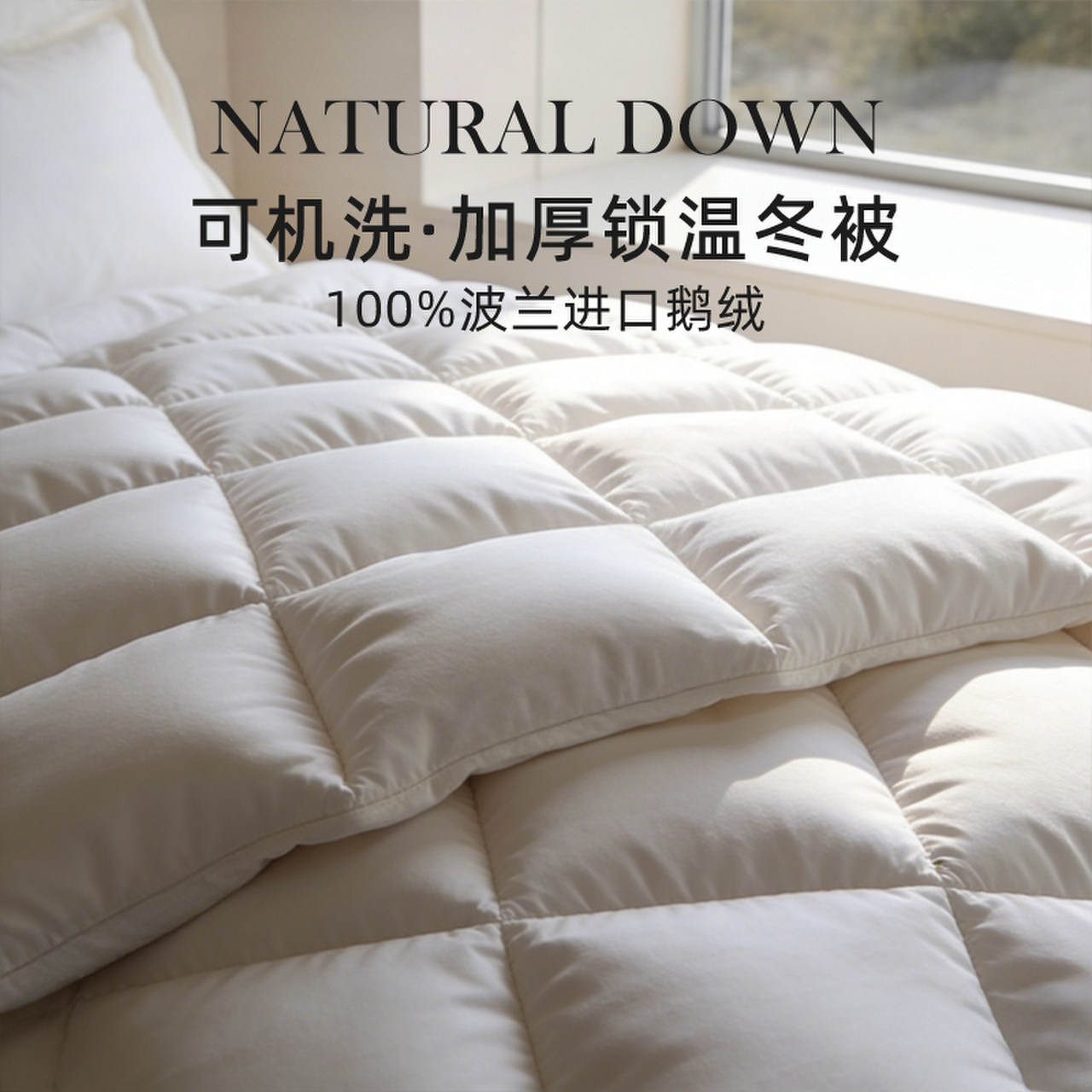 罗莱家纺羽绒被子冬被被芯双人床波兰进口95白鹅绒冬被加厚保暖