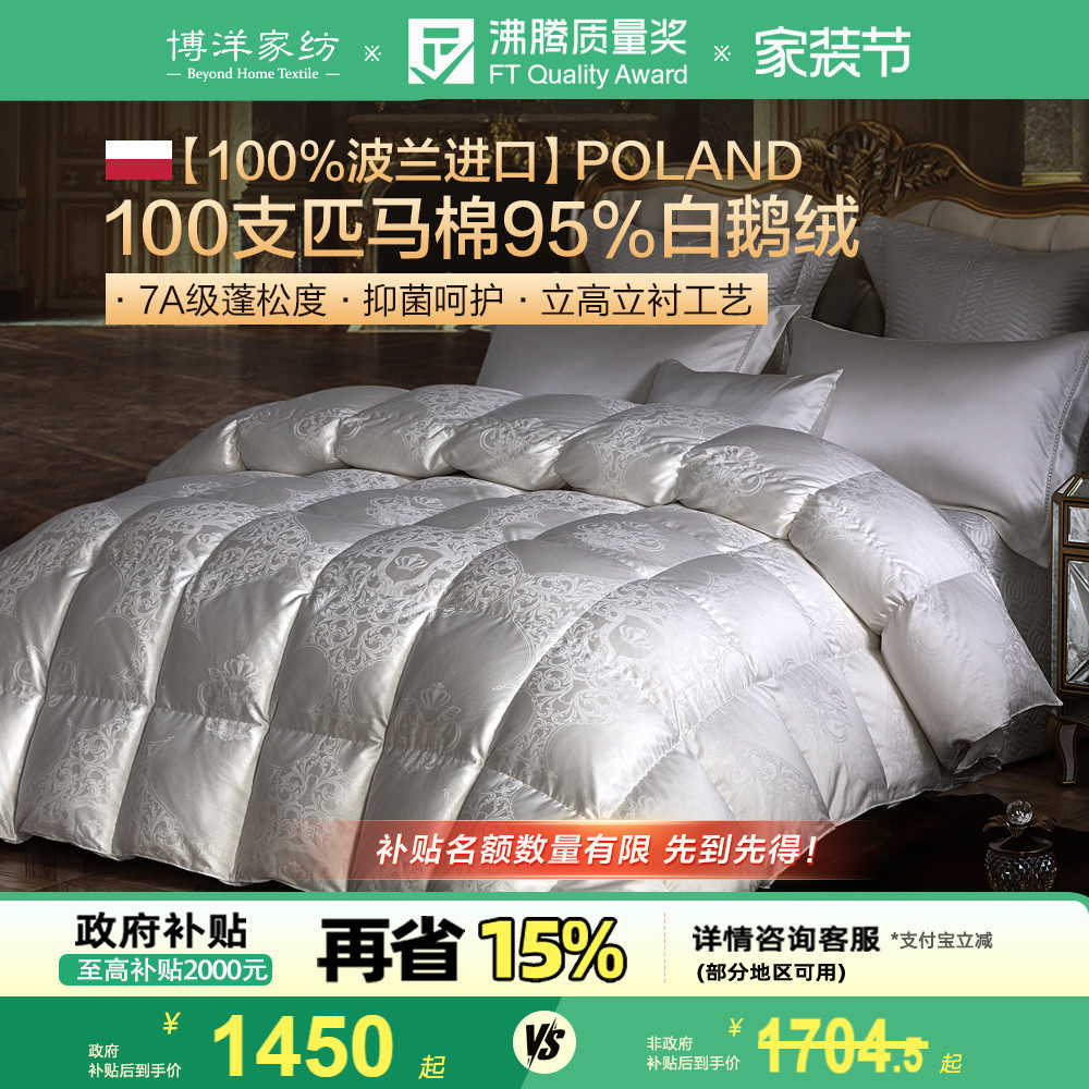 博洋100支匹马棉95白鹅绒波兰进口羽绒被子冬被全棉双人春秋被芯