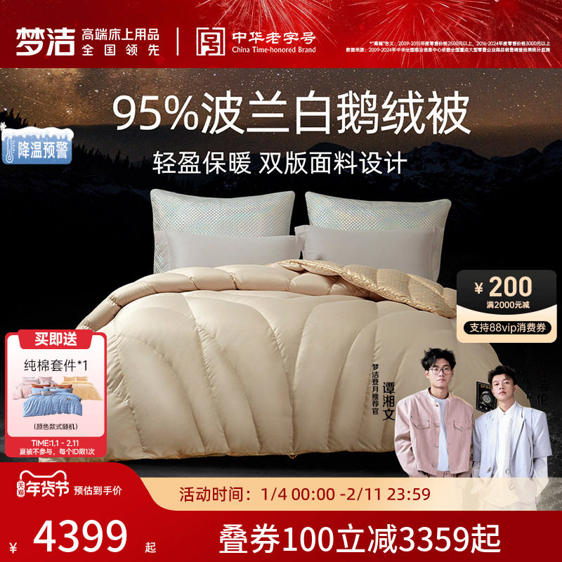 梦洁家纺羽绒被子冬被波兰进口95白鹅绒填充高蓬松秋冬加厚保暖