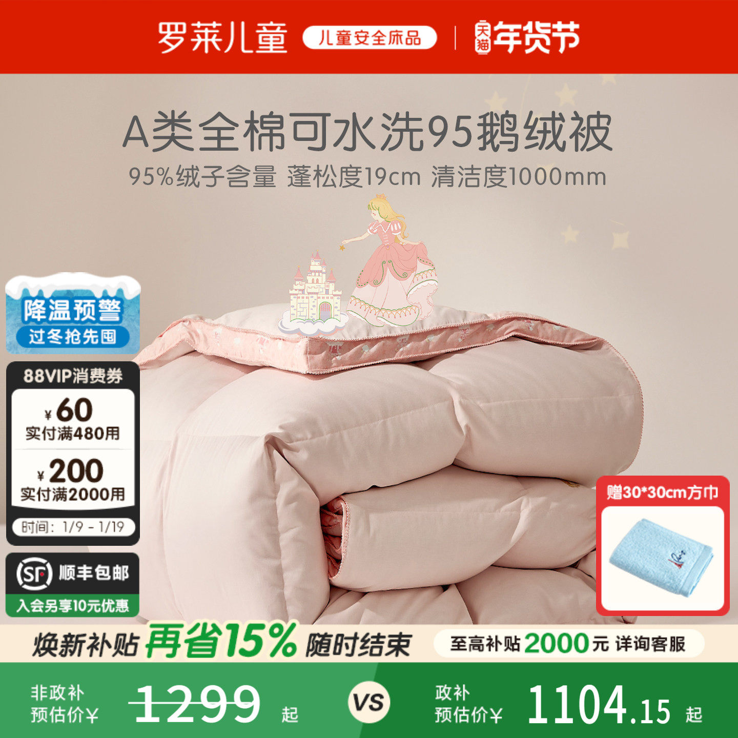 罗莱儿童秋冬新品被子A类全棉95鹅绒被可水洗四季被冬被羽绒被