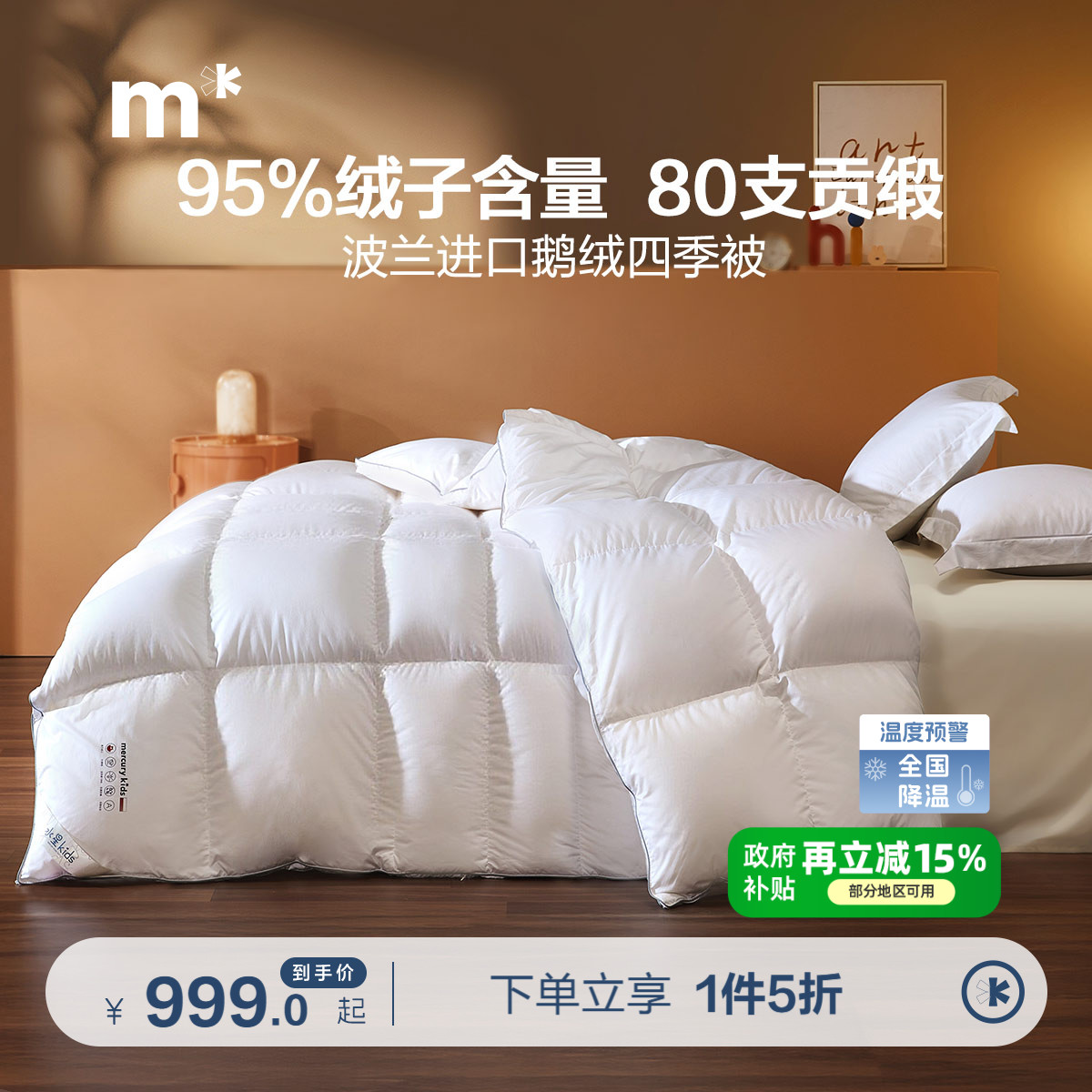 水星家纺A类鹅绒被羽绒被95白鹅绒冬被冬季加厚保暖被芯春秋被子