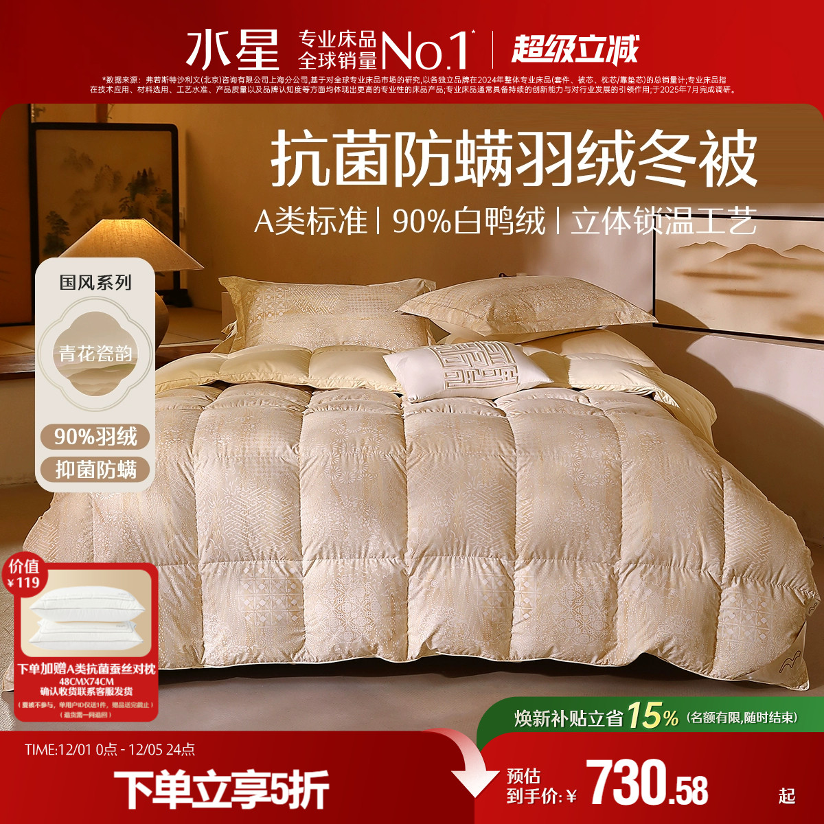 水星家纺羽绒被抗菌防螨白鸭绒冬被冬季高蓬松保暖被子被芯新中式