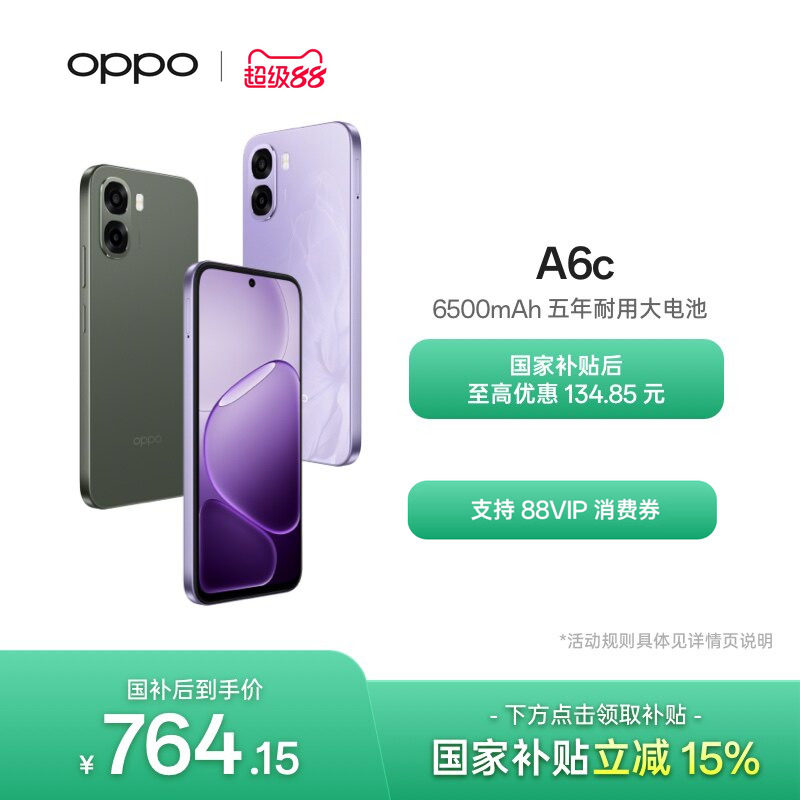 【新品上市】OPPO A6c 6500mAh五年耐用大电池 老年人智能手机 国家补贴 48个月流畅护航oppo官方旗舰店
