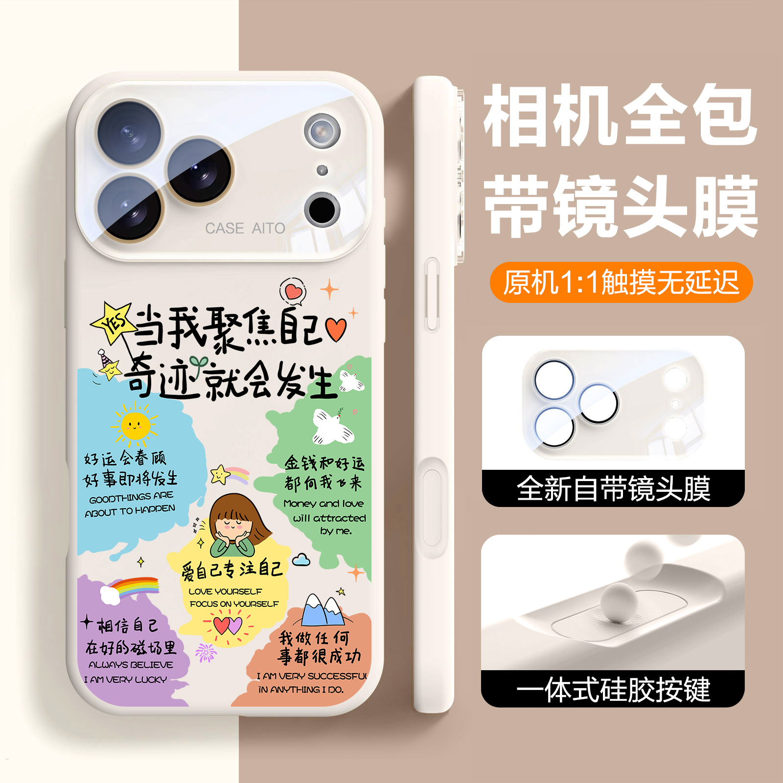 【全包镜头膜】聚焦自己文字适用苹果17手机壳镜头全包16promax液态硅胶iphone17男2025新款15原创14标准版13