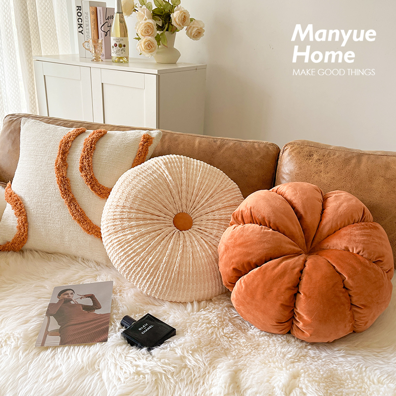 蔓越家 北欧ins荷兰绒圆形靠垫南瓜枕纯色抱枕靠背客厅蒲团坐垫