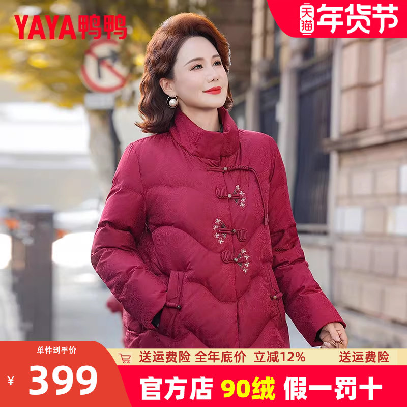 鸭鸭中老年妈妈羽绒服女冬季25新款老太短款刺绣加厚保暖奶奶外套