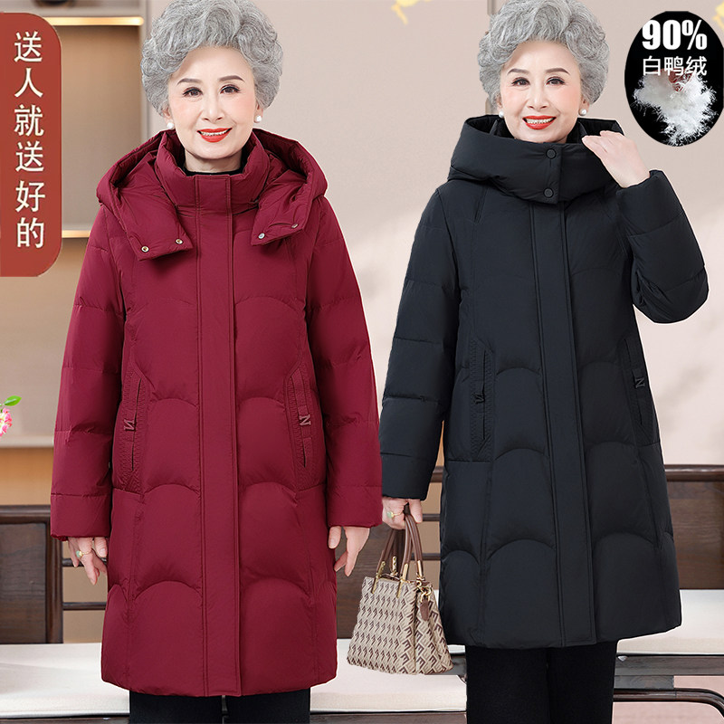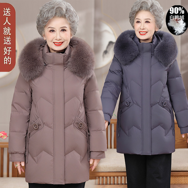 中老年妈妈羽绒服女新国标90%白鸭绒奶奶冬装老太太加厚羽绒外套