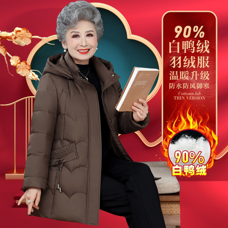商场中老年妈妈羽绒服连帽女款冬季2025新款妈妈保暖衣服外套大码