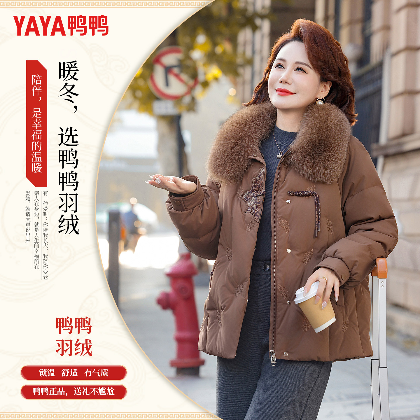 - 中老年女皮羽绒服