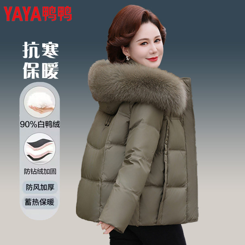 鸭鸭中老年妈妈羽绒服女可脱卸帽短款2025冬季新款狐狸毛领外套衣