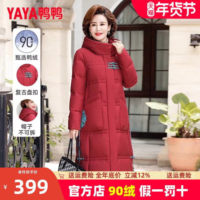 YAYA鸭鸭中老年妈妈羽绒服女2025年冬季新款长款过膝加厚保暖外套