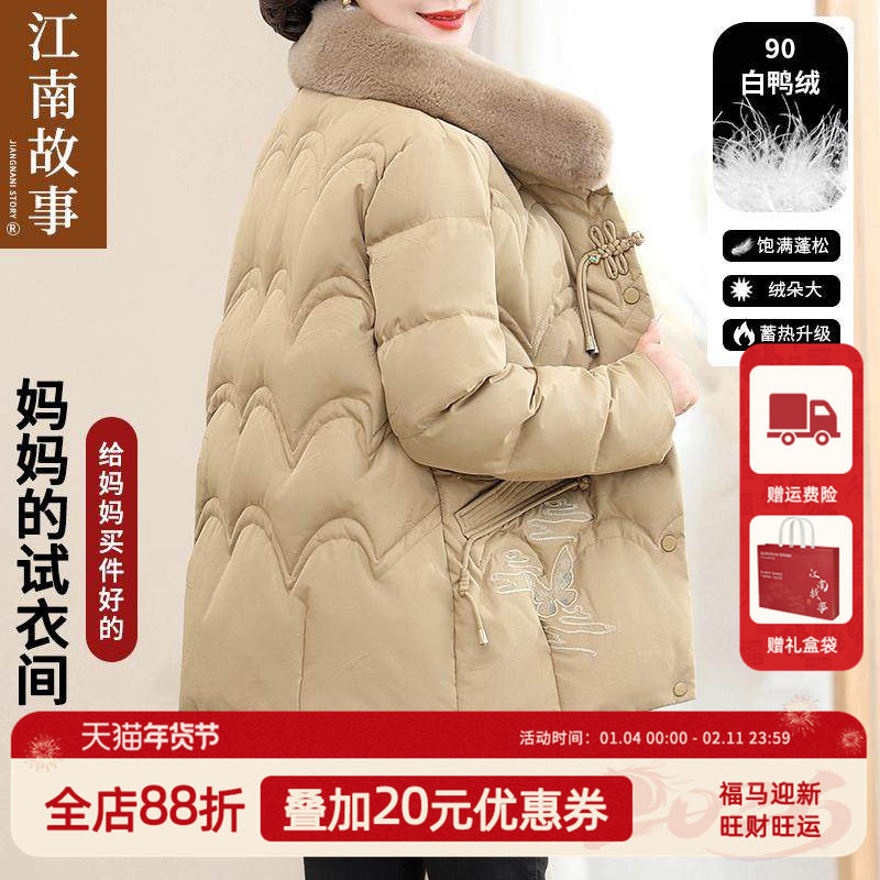 JIANGNAN STORY/江南故事中老年妈妈羽绒服2024冬季洋气鸭绒外套