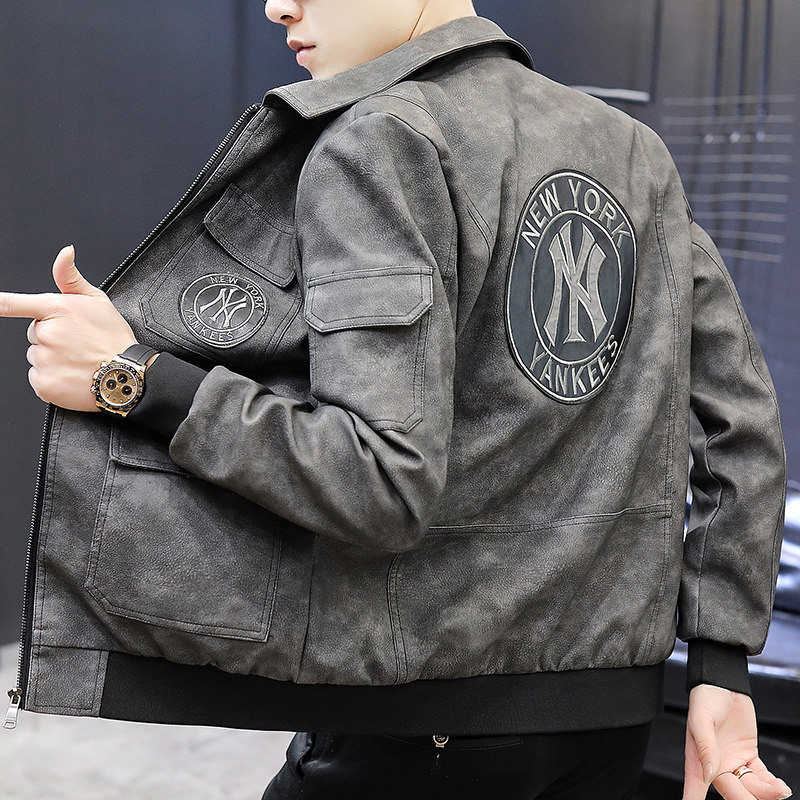 2023新款皮衣男机车青年外套薄款秋季修身韩版皮夹克帅气男装夹克