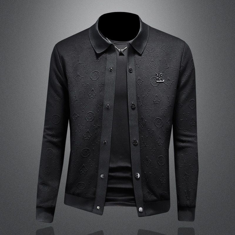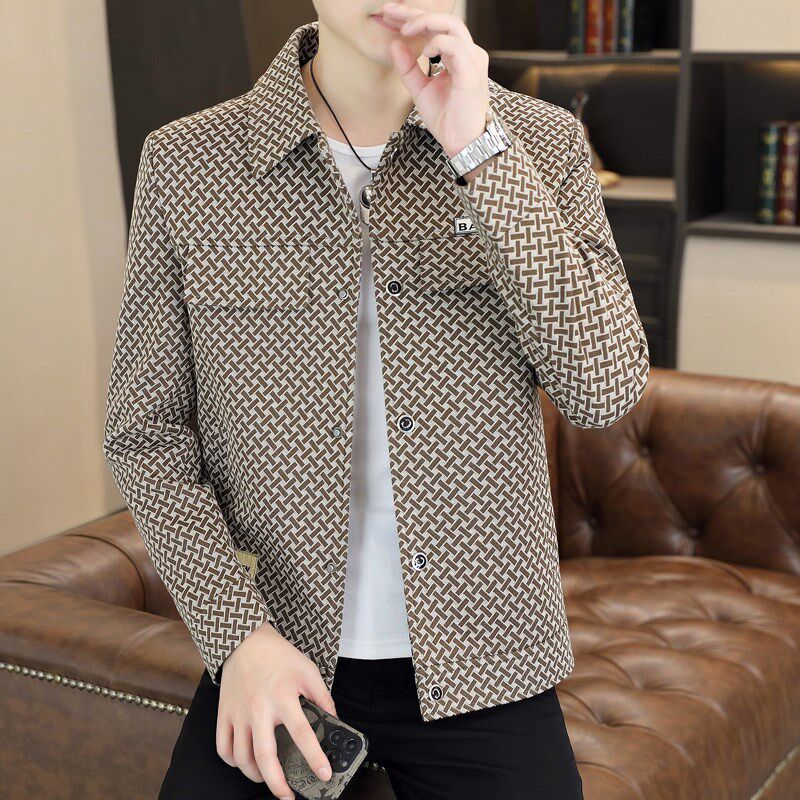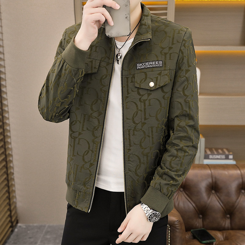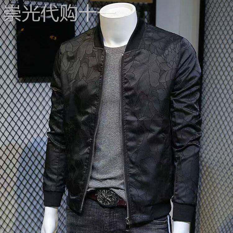 高端春季男士薄款夹克翻领帅气时尚修身青年提花韩版男款外套潮流