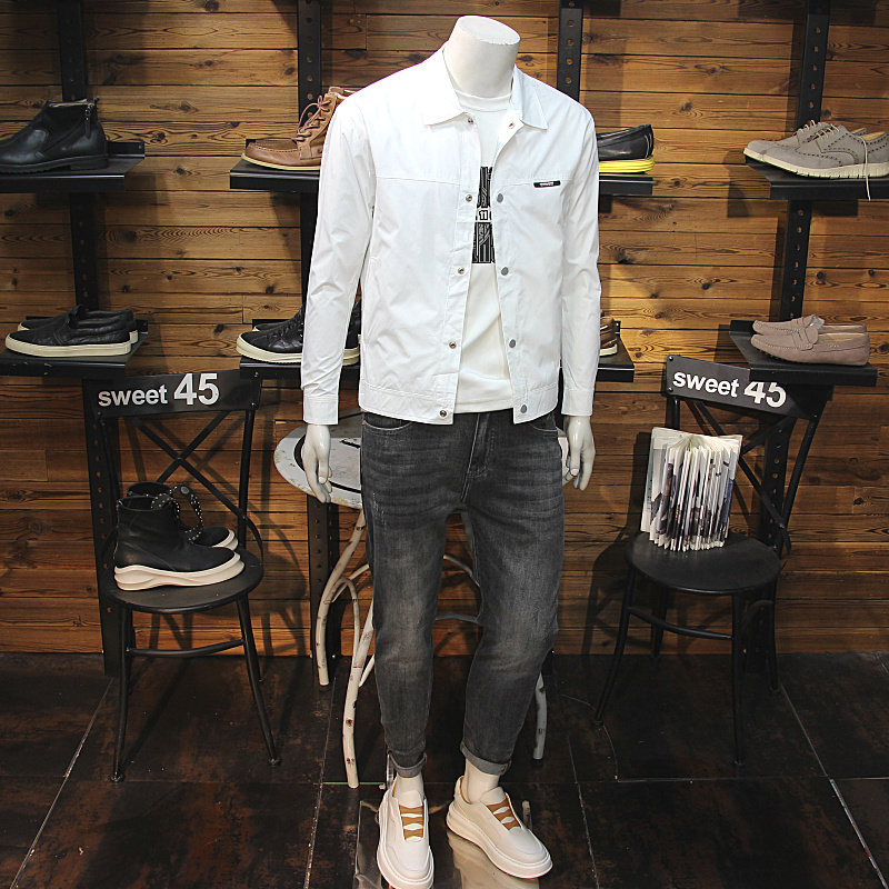 潮流小伙修身圆领夹克男士外套休闲青年薄款衣服男生褂子帅气春装