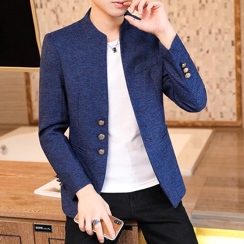 春秋季中山装夹克外套青年修身男士立领帅气休闲薄款西装衣服潮流