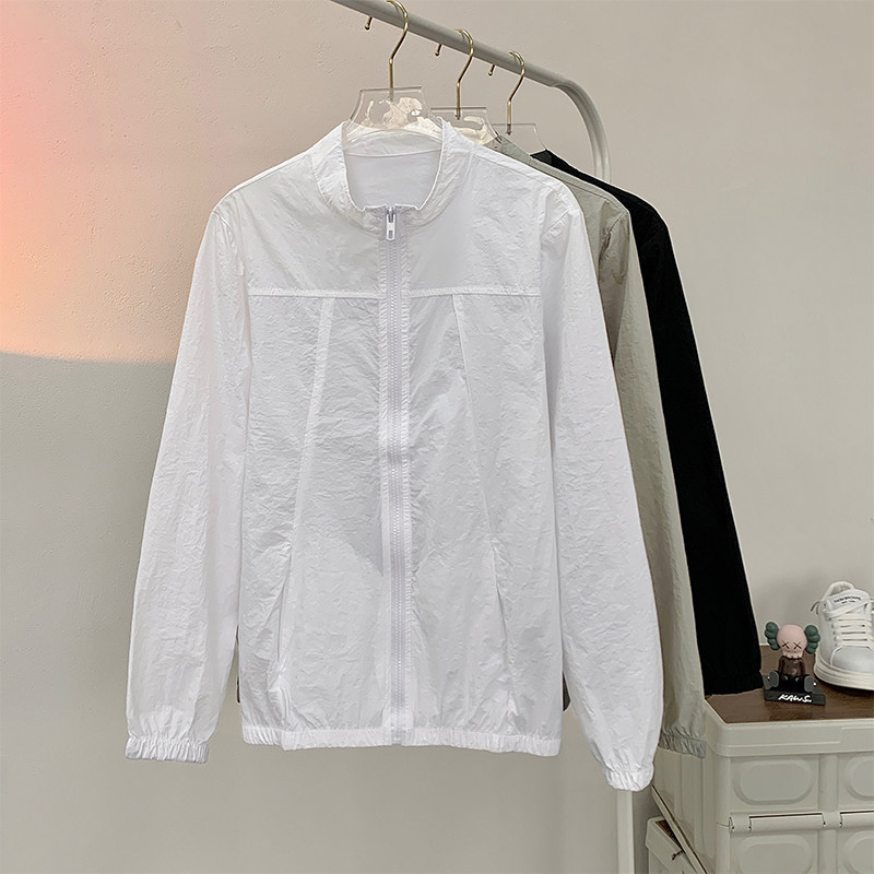 夏季薄款小立领青年夹克防晒衣潮牌男士修身帅气工装百搭上衣外套