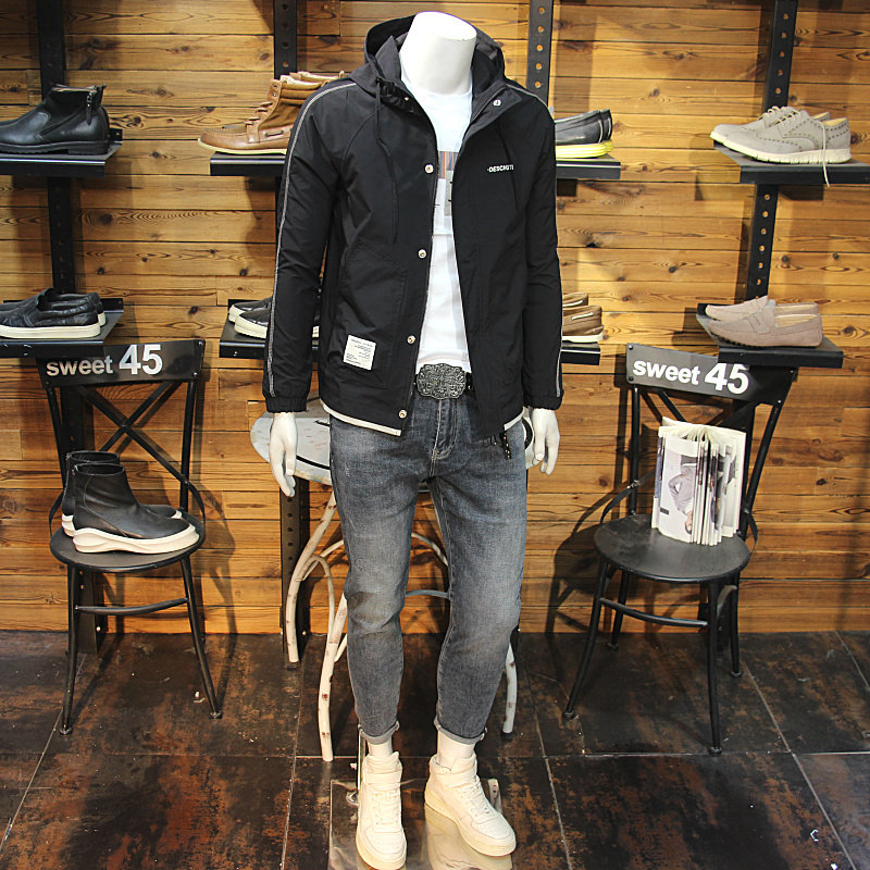 春夏薄款男外套简约修身休闲青年帅气连帽夹克流行冲锋衣薄外套男