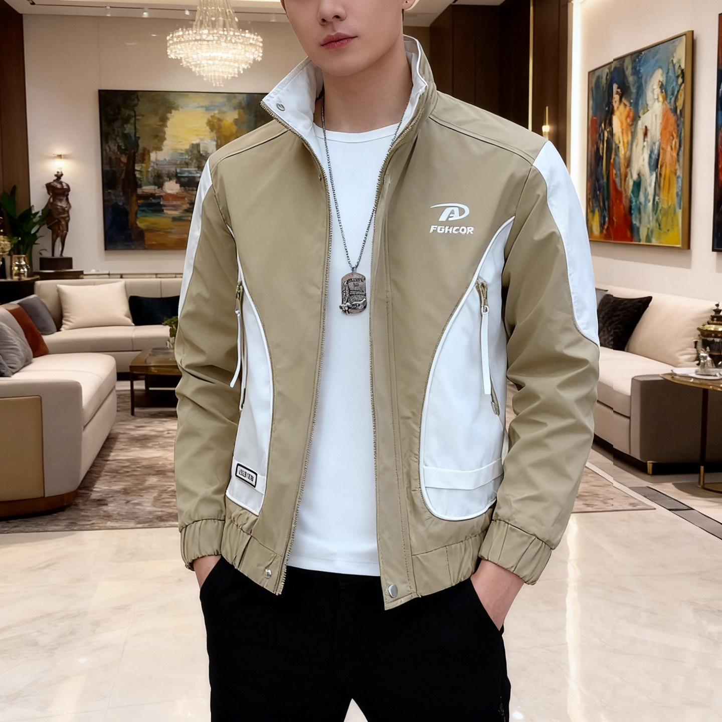 新款青年时尚男士夹克休闲外套修身拼色薄款帅气学生潮流百搭上衣