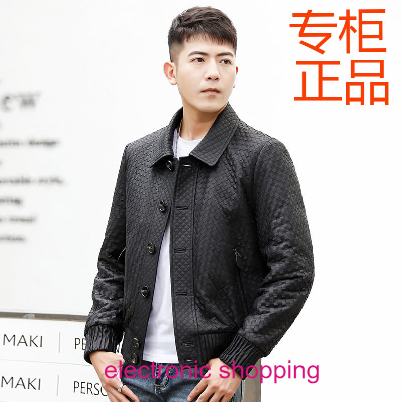 编织真皮皮衣男头层牛皮青年帅气翻领皮夹克修身韩版潮流薄款外套