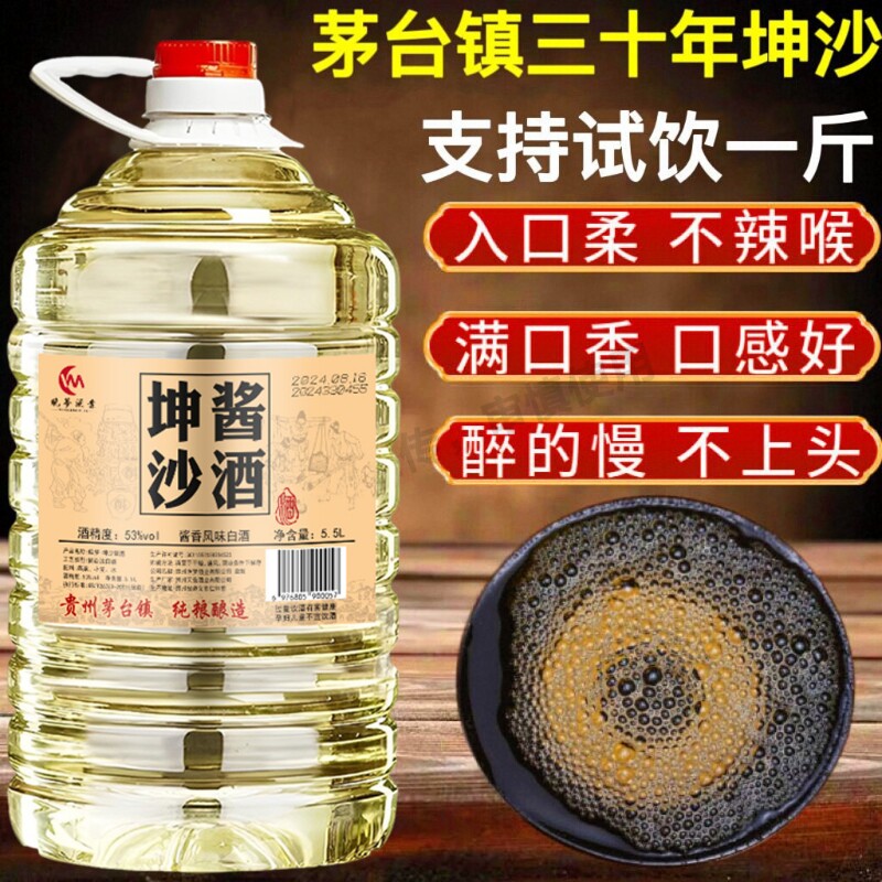 足10斤白酒贵州53度酱香型纯粮食坤沙桶装原浆散酒特价批发泡酒
