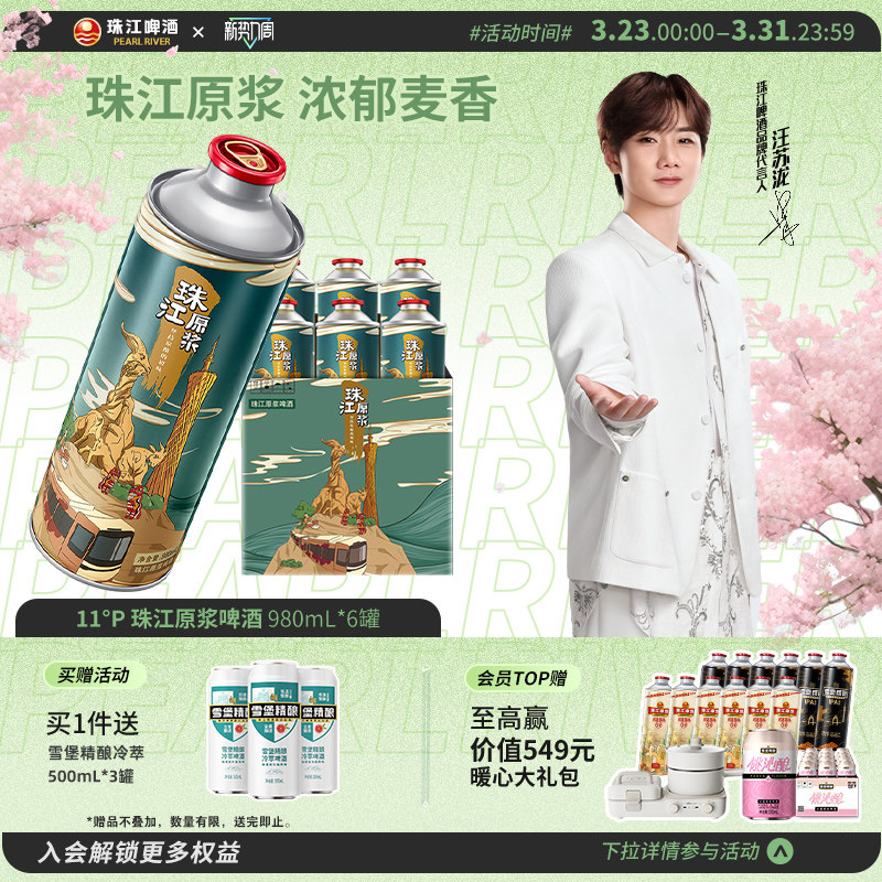 珠江原浆啤酒980ml*6大罐装整箱批发全麦精酿鲜啤官方旗舰店