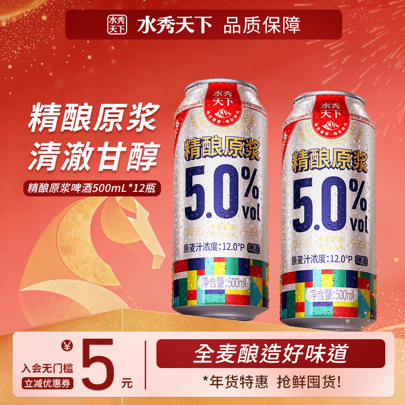 千岛湖水秀天下精酿原浆全麦黄啤酒浓郁500ml*12罐整箱批发包邮