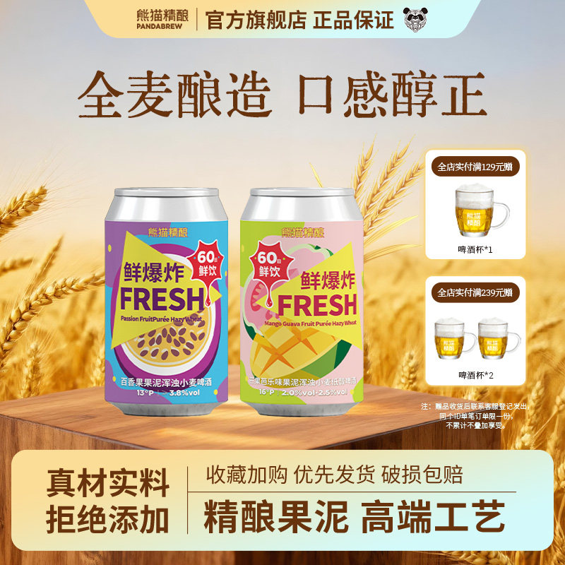 熊猫精酿芒果芭乐果泥+百香果泥小麦果啤组合*12原浆啤酒整箱批发