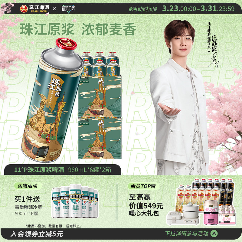 11°P珠江原浆啤酒980ml*12大罐整箱批发鲜啤扎啤官方旗舰店