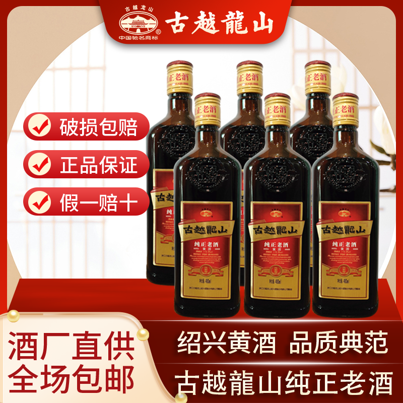 古越龙山浙江绍兴黄酒纯正老酒480ml六瓶装10度半甜型黄酒可自饮