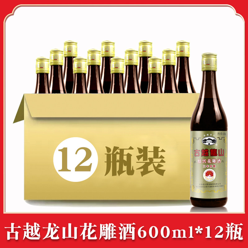 浙江绍兴黄酒 古越龙山黄酒花雕酒 陈酿三年花雕酒 600ml*12整箱