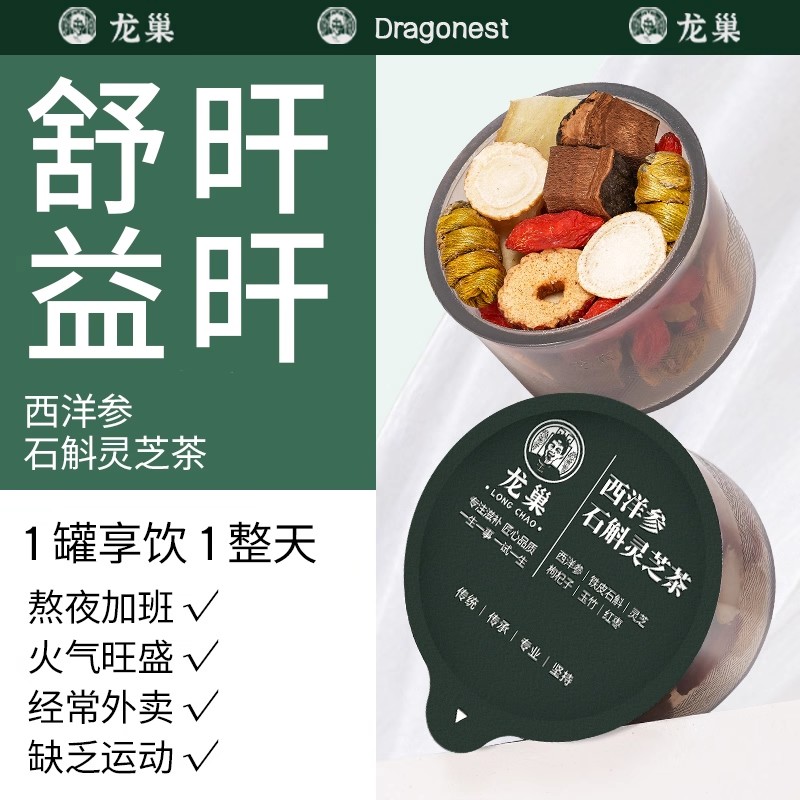 龙巢30小罐养生茶西洋参铁皮石斛紫灵芝厚切片人参茶熬夜肝煮泡茶