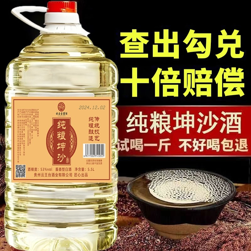 贵州酱香型53度白酒桶装纯粮食坤沙老酒10斤特价清仓泡酒回购销量