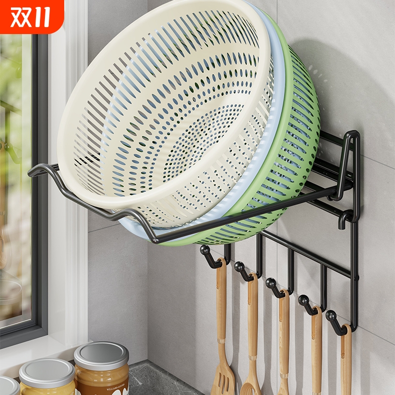 可折叠洗菜盆架放盆子收纳架壁挂挂钩免打孔卫生间脸盆架沥水挂架