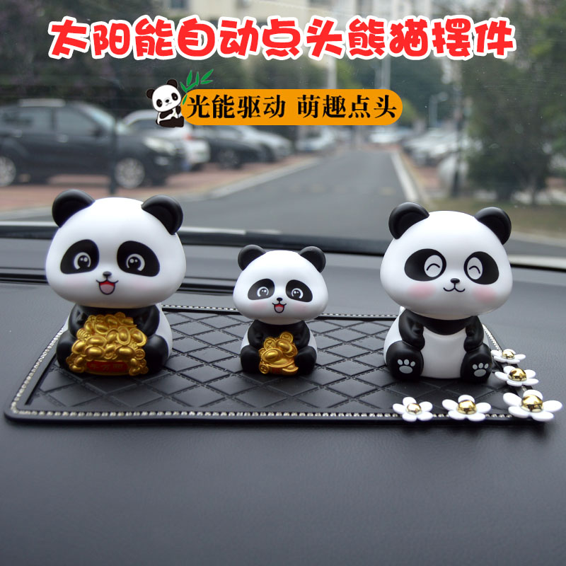 太阳能自动点头熊猫车载内饰摆件招财保平安可爱汽车中控台装饰品