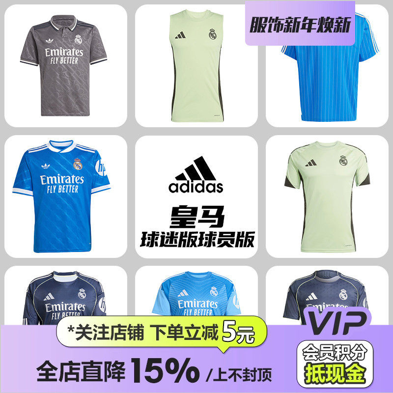 皇贝正品Adidas阿迪达斯皇马球迷版球员版热身运动训练球衣足球服