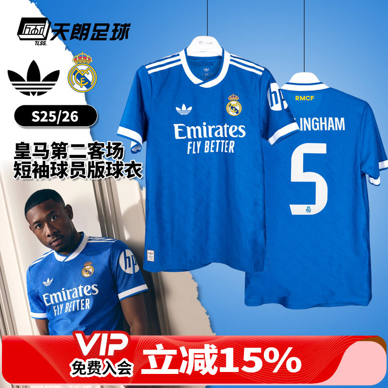 天朗足球 阿迪达斯25/26皇马第二客场短袖球员版球衣足球服JV5839