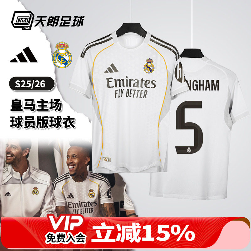 天朗足球阿迪达斯皇马25/26赛季主场球员版透气球衣足球服JV5918