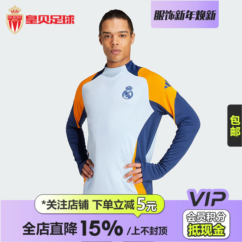 Adidas皇马25/26球员版套头秋冬透气半拉链长袖球衣足球服JP4020