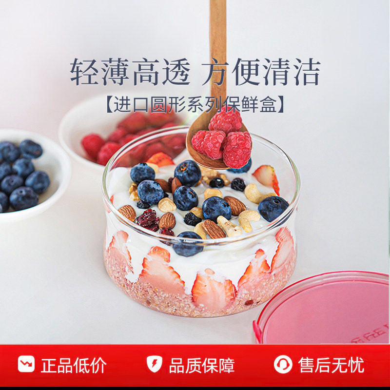乐扣乐扣格拉斯玻璃保鲜盒套装圆形饭盒微波炉加热家用水果食品碗