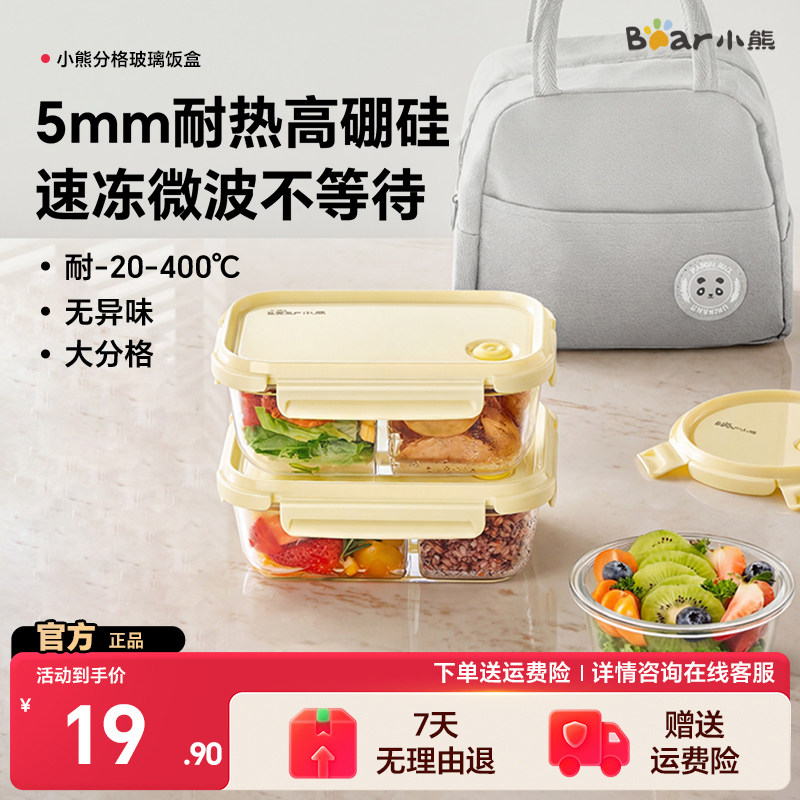 小熊玻璃饭盒微波炉加热饭盒便当保鲜盒上班族学生分格带饭水果盒