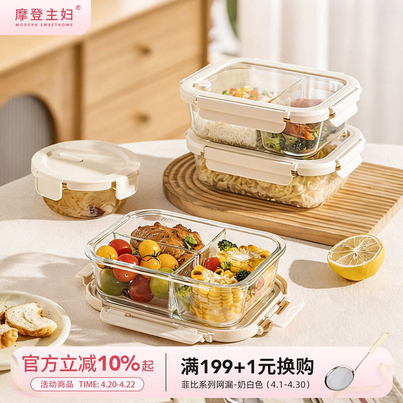 摩登主妇玻璃饭盒微波炉加热专用保鲜盒分格便当盒上班族带饭餐盒