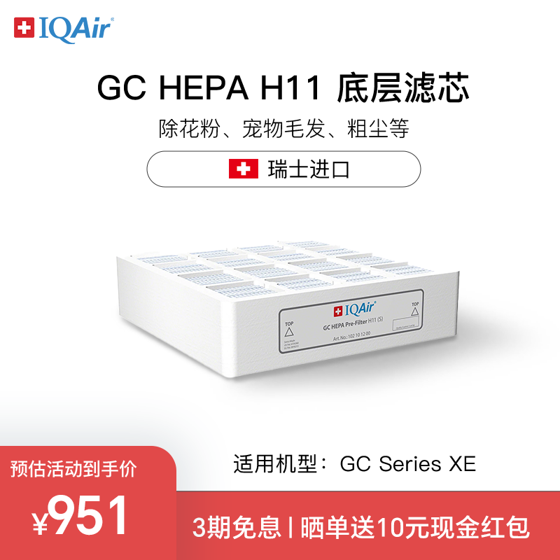 IQAir 空气净化器滤芯 底层替换滤网 GC H11 HEPA 适用GC Series
