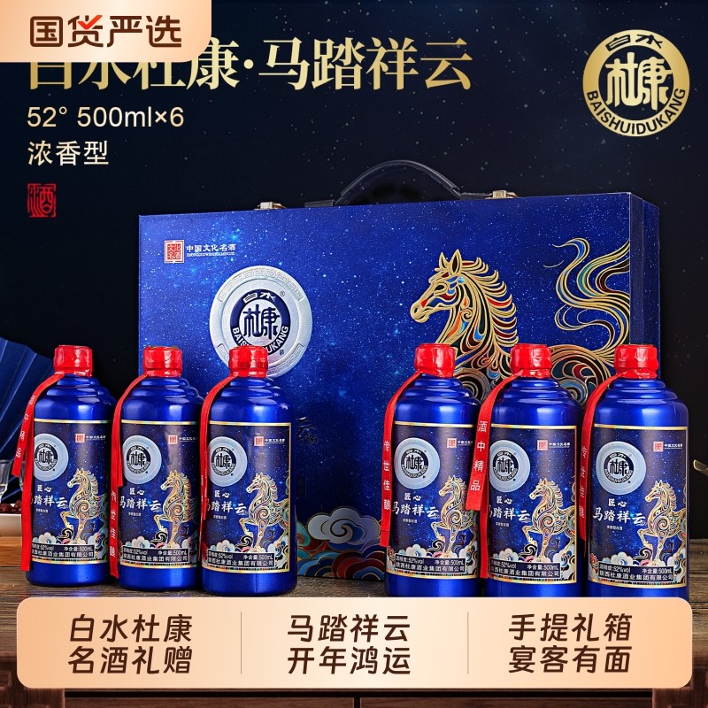 白水杜康52度浓香白酒整箱6瓶马踏祥云手提过年送礼收藏精品纯粮